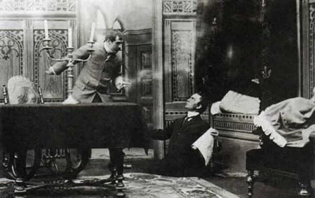 Larsen (rechts) in dem Holmes-Film Den Graa Dame von 1909